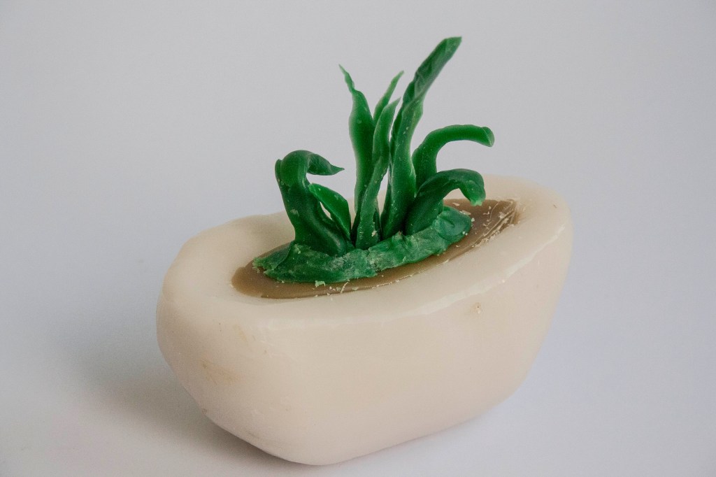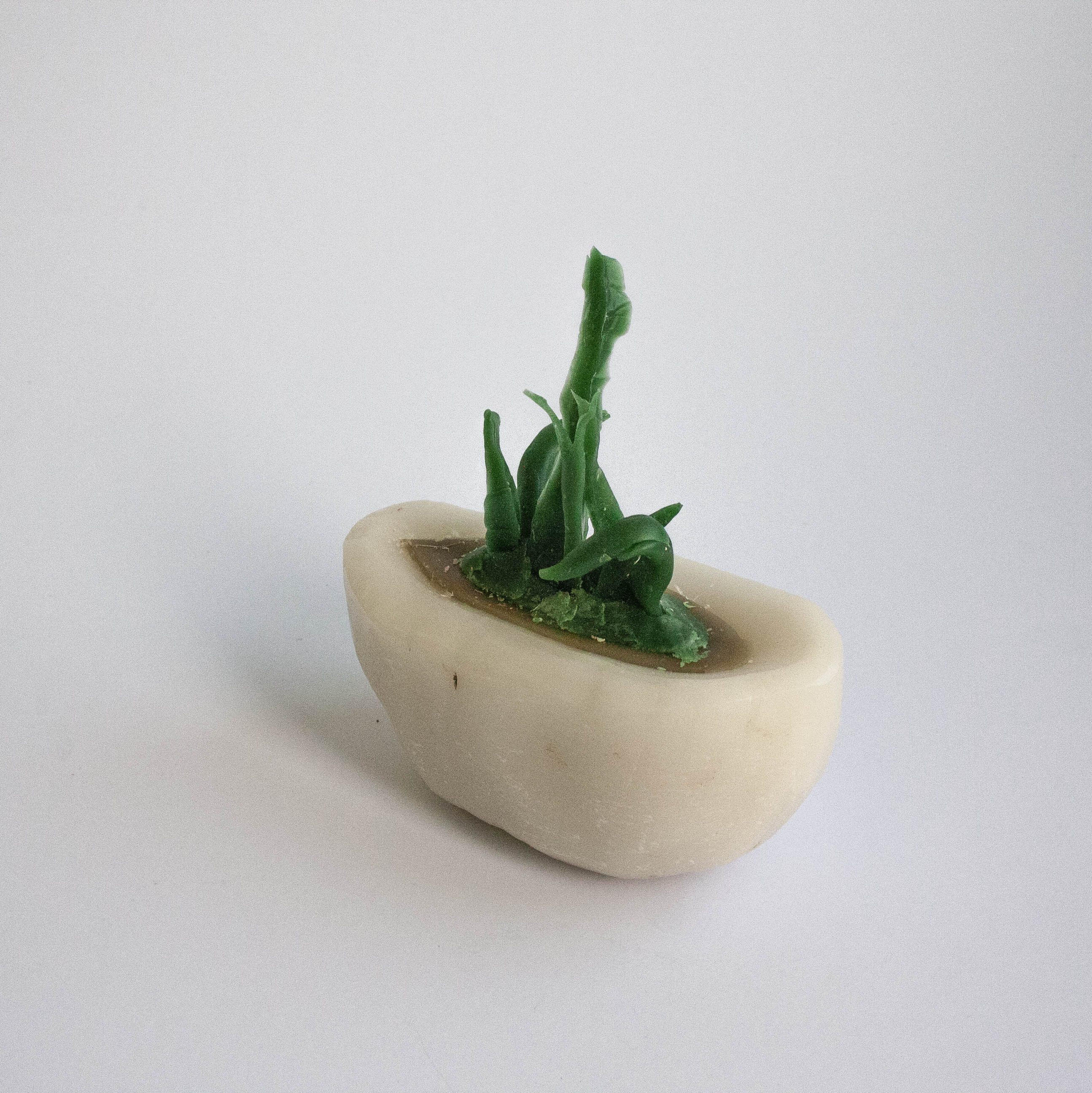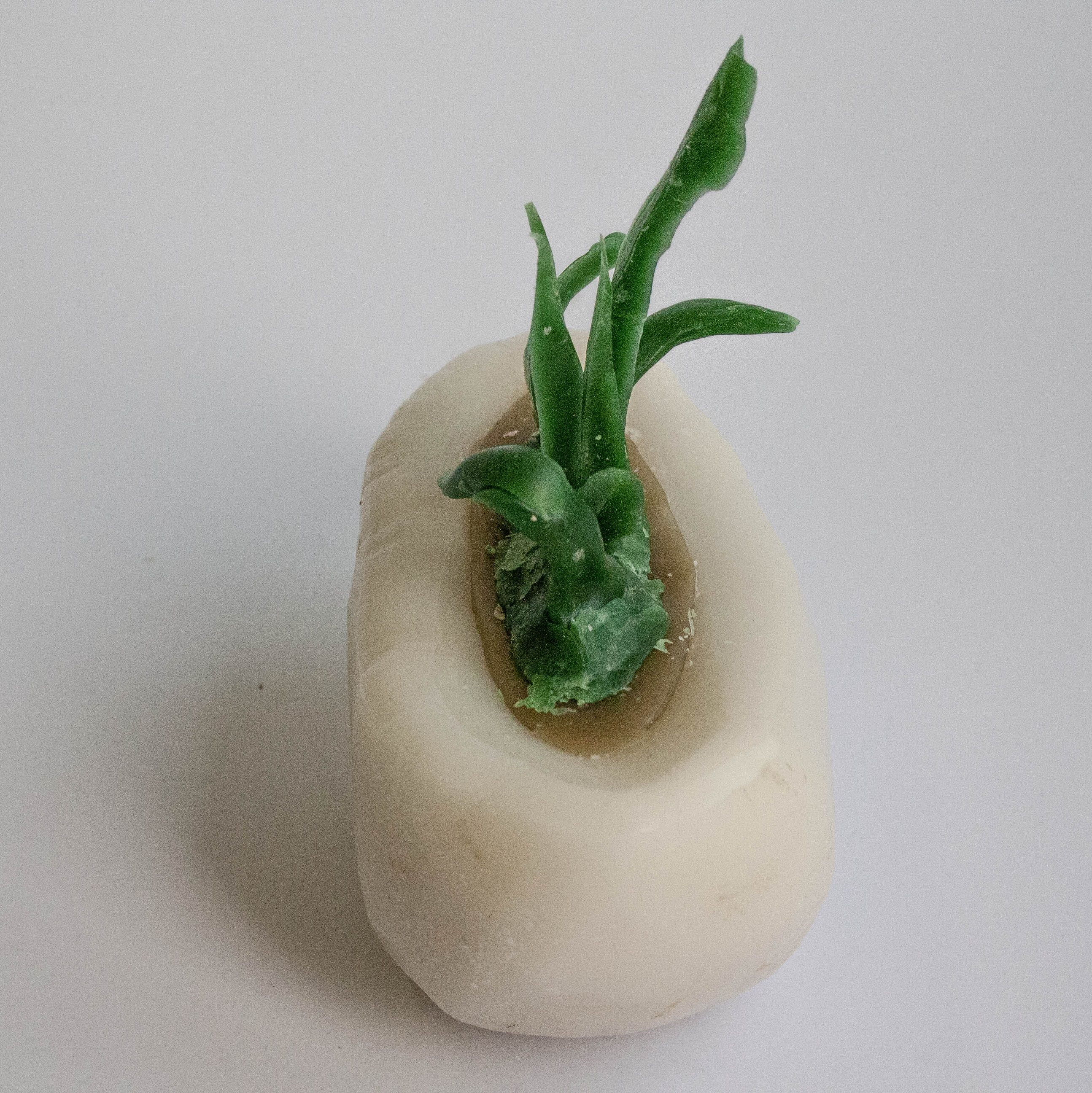 We used wax and forms made out of aluminum foil and carving tools to create various wax plants.