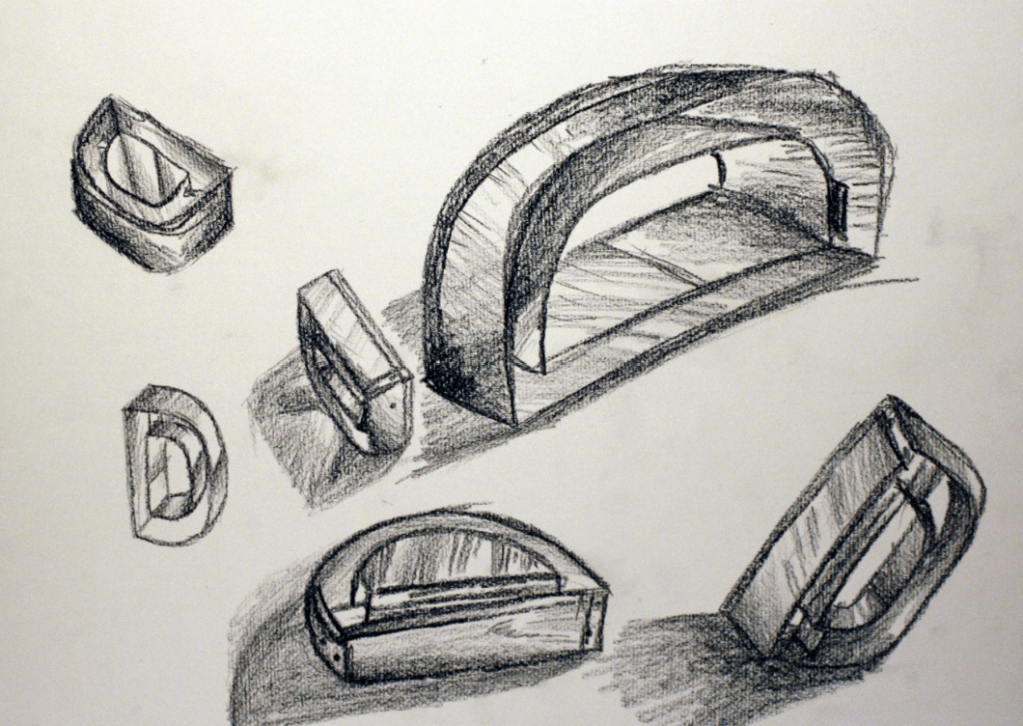 The drawing utilized a metal letter-shaped cookie-cutter for reference, emphasizing shadow and texture.