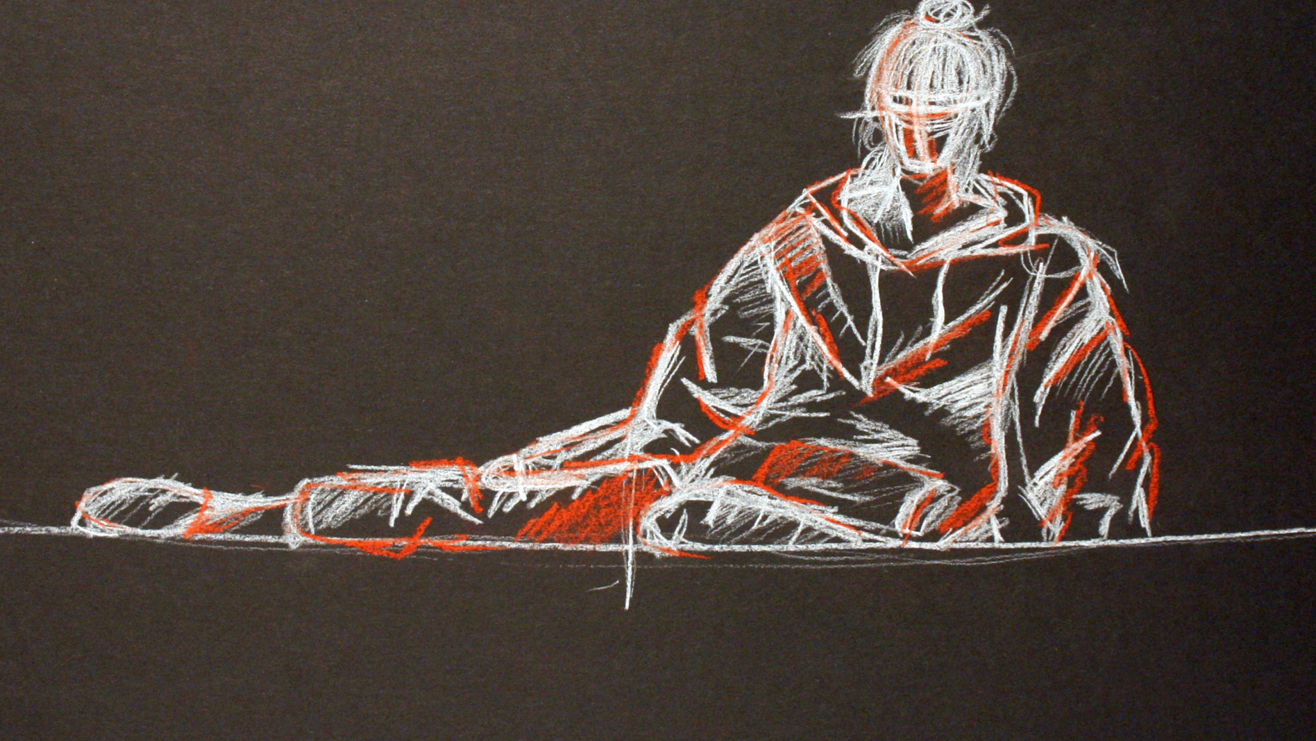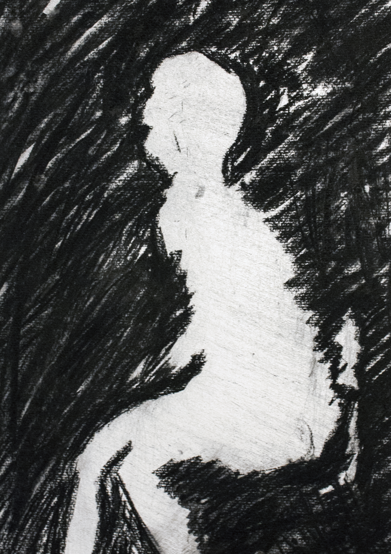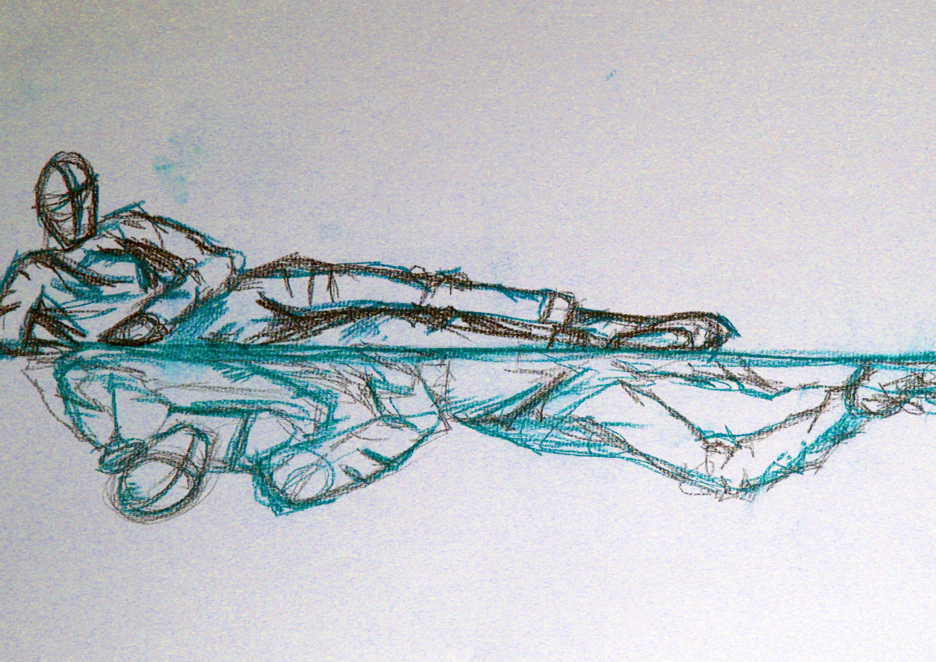 quick body studies with charcoal and crayons, using classmates as models and completing sketches in 1-3 minutes, which enhances observation and expression of proportions and posture.